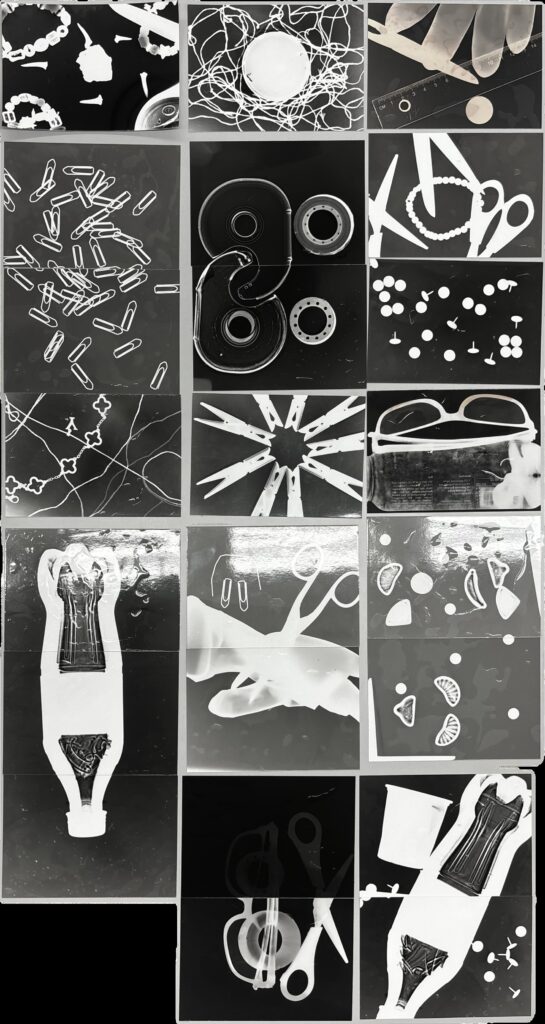 Die Arbeit in der Dunkelkammer erlaubte uns, mit Licht, Zeit und Anordnung zu experimentieren und den Entstehungsprozess bewusst zu steuern. Jedes Fotogramm ist dadurch ein Unikat und zeigt eine direkte, fast physische Verbindung zwischen Objekt und Bild.