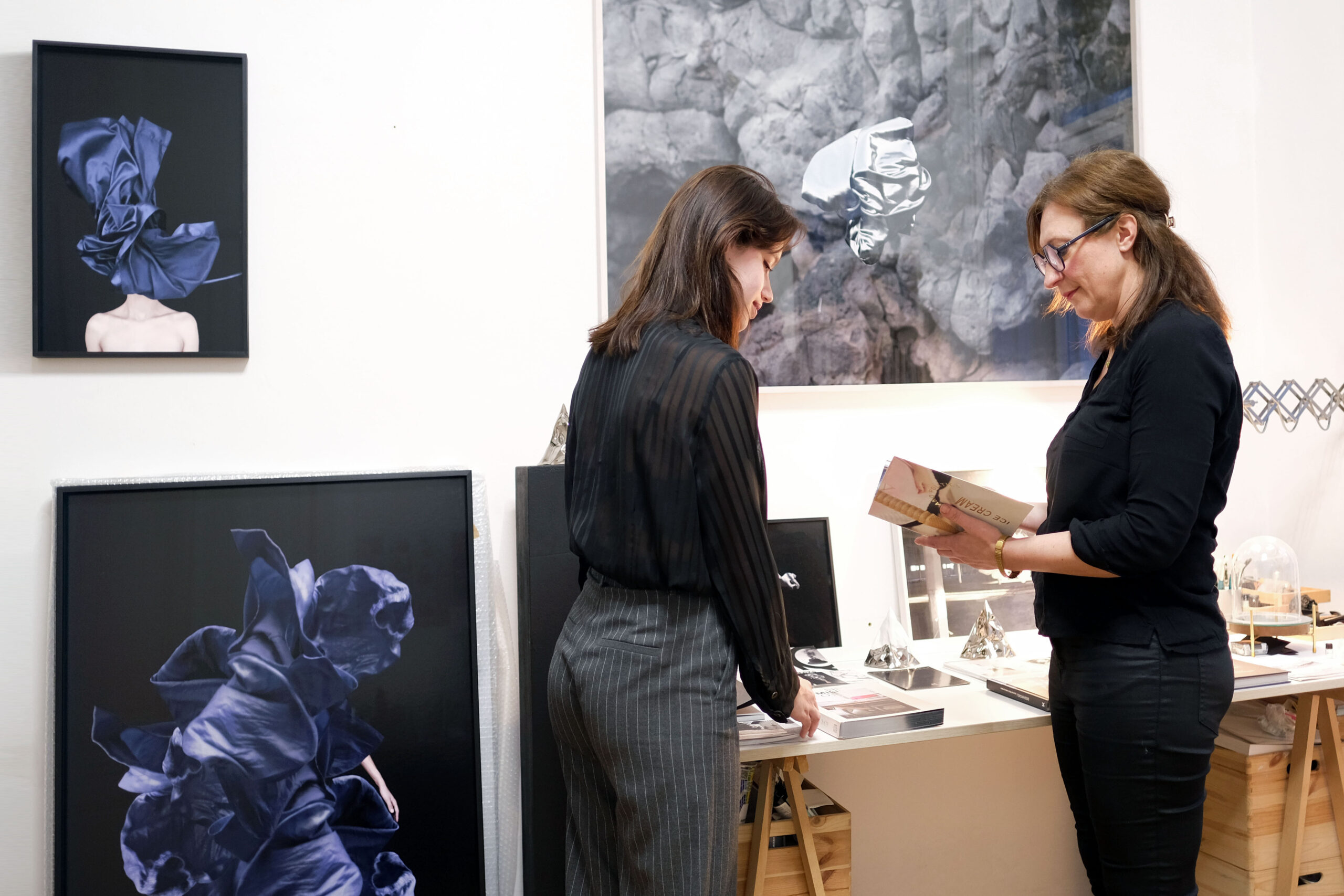 Die Schülerin Anna Umshaus mit der Fotokünstlerin Sissa Micheli in ihrem Atelier: